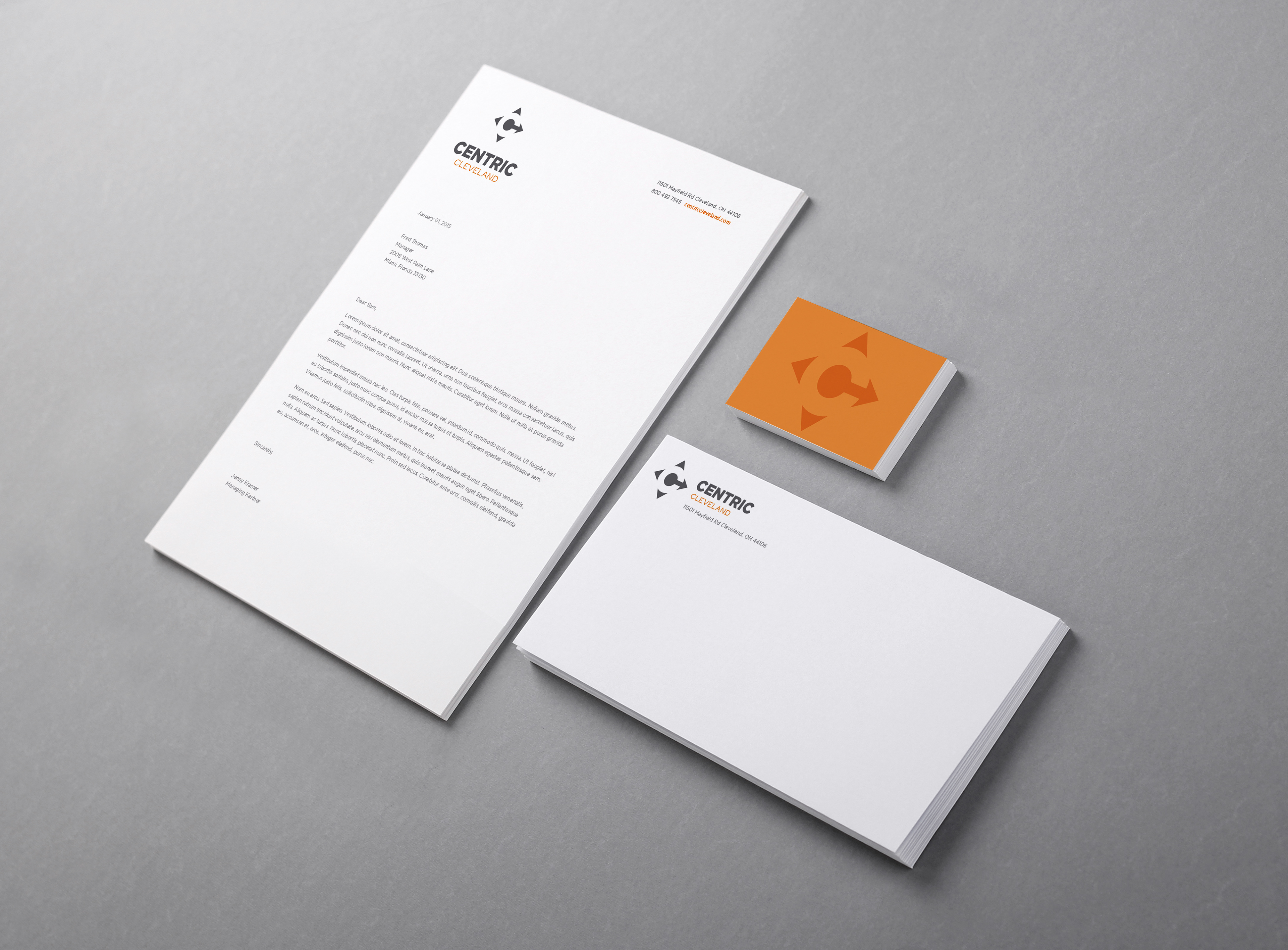 Client: Deco Communities Materials: Logo, Letterhead, Business Card, Branded Merchandise Brand identity for a seven story apartment building in Cleveland's University Circle.